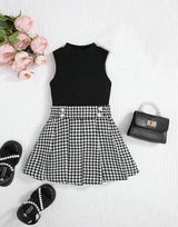 Mock Neck Top & Houndstooth Print Pleated Skirt